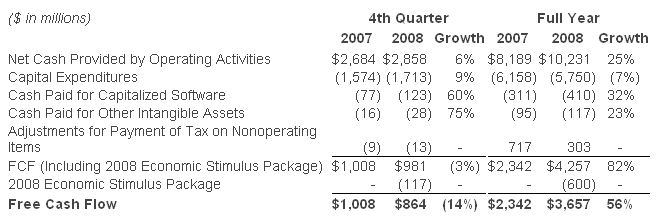 Note: The definition of Free Cash Flow remains unchanged and specifically excludes any impact from the 2008 Economic Stimulus package.