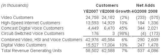 Customers. As of December 31, 2008, Comcast’s video, high-speed Internet and voice customers totaled 45.6 million, reflecting 2.6 million net additions during 2008.